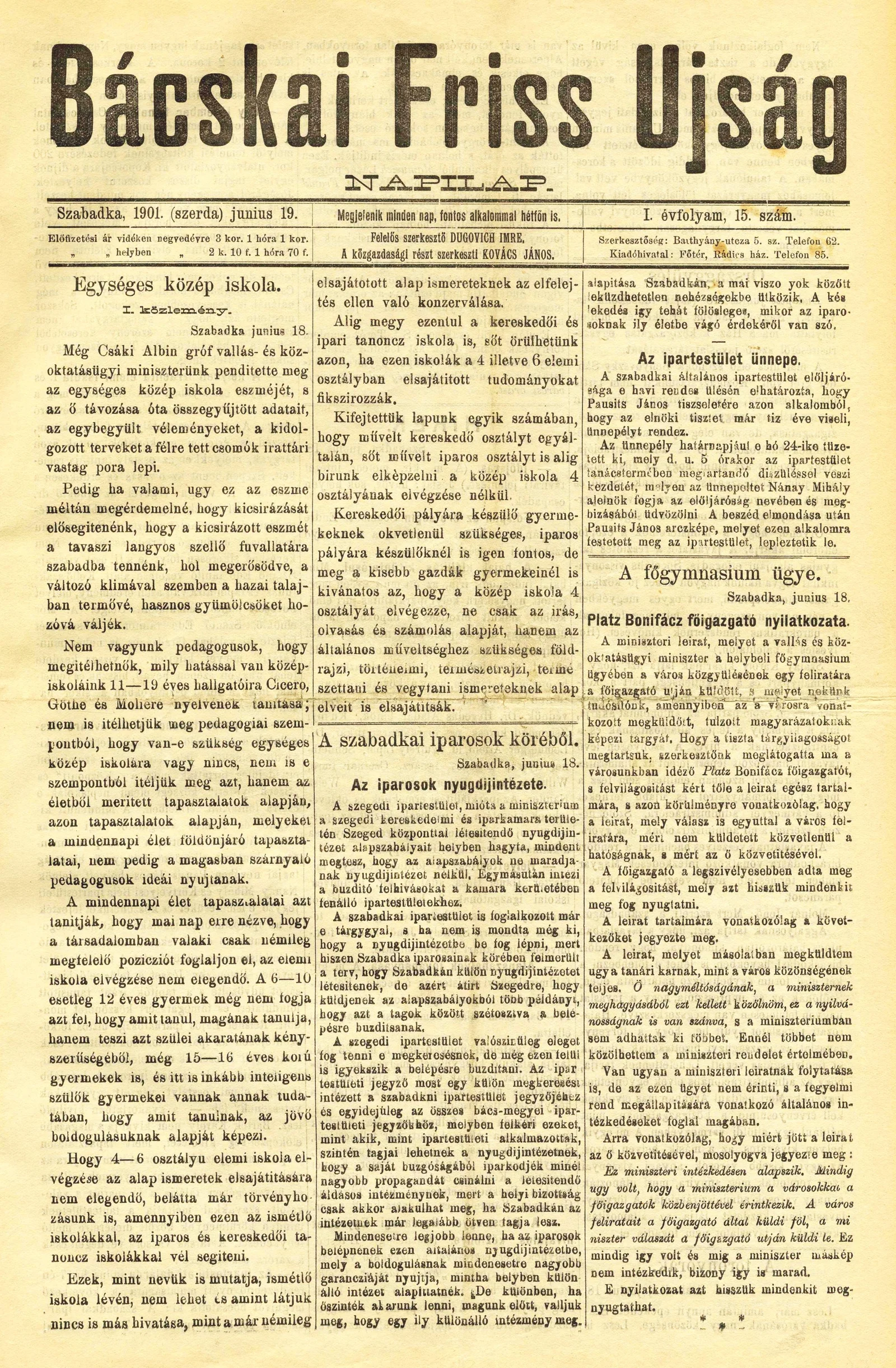 Bácskai Friss Ujság, 1. évf. 1901. június 19. 15. sz.