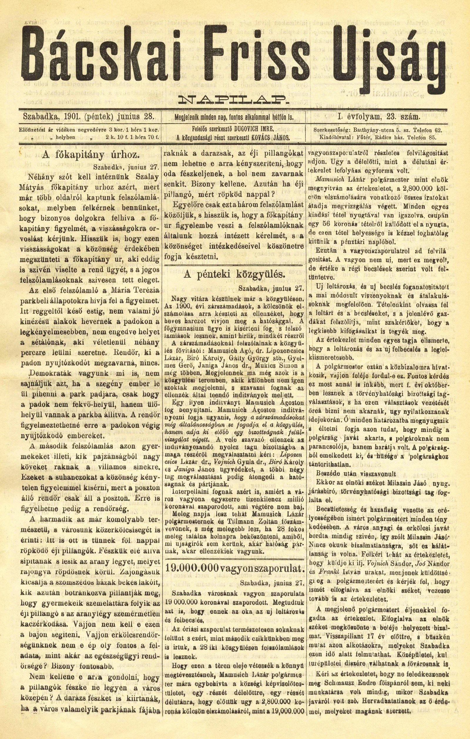 Bácskai Friss Ujság, 1. évf. 1901. június 28. 23. sz.