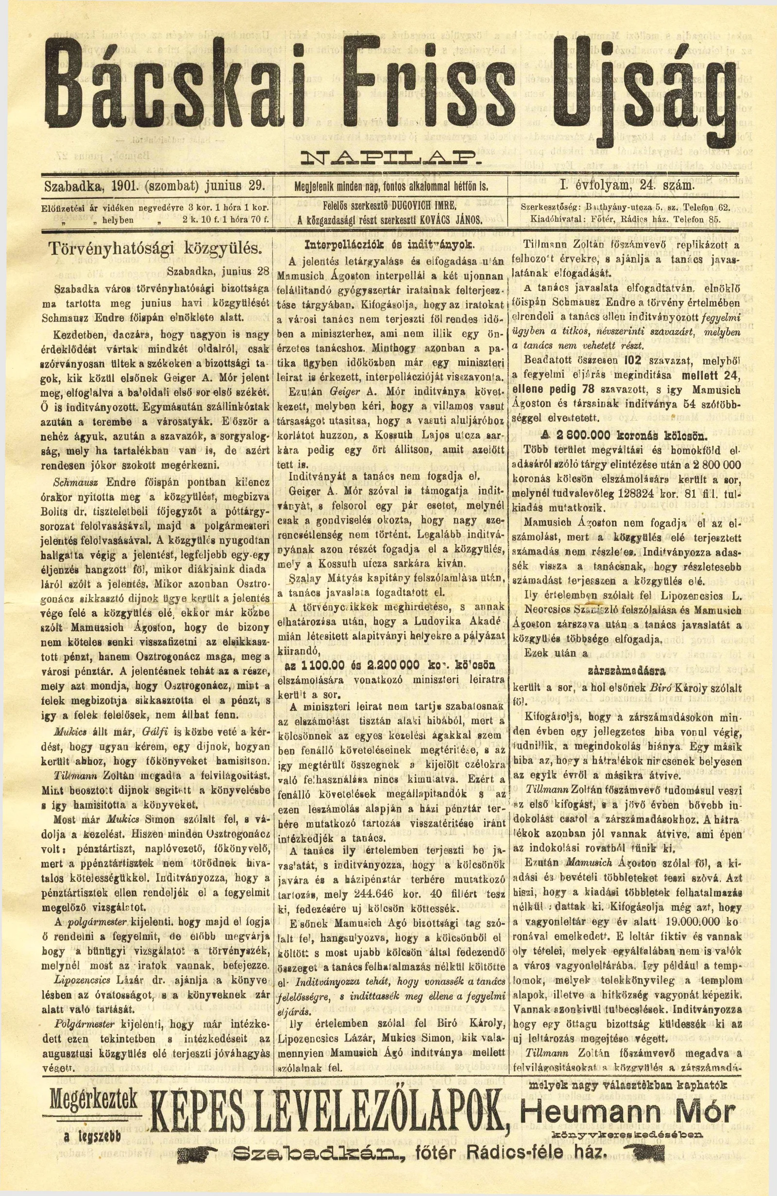 Bácskai Friss Ujság, 1. évf. 1901. június 29. 24. sz.