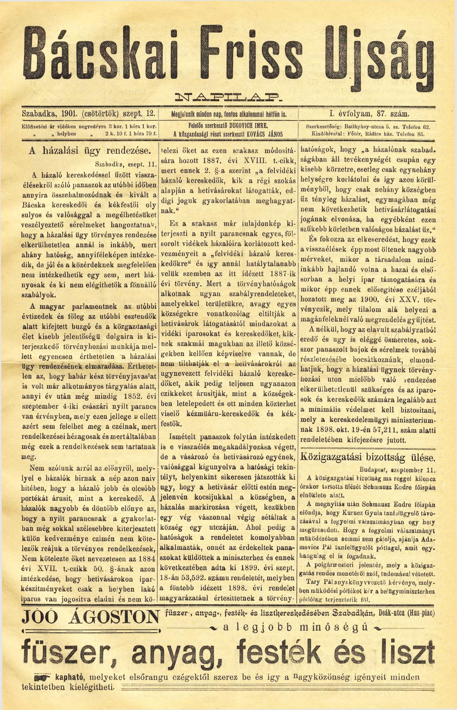 Bácskai Friss Ujság, 1. évf. 1901. szeptember 12. 87. sz.