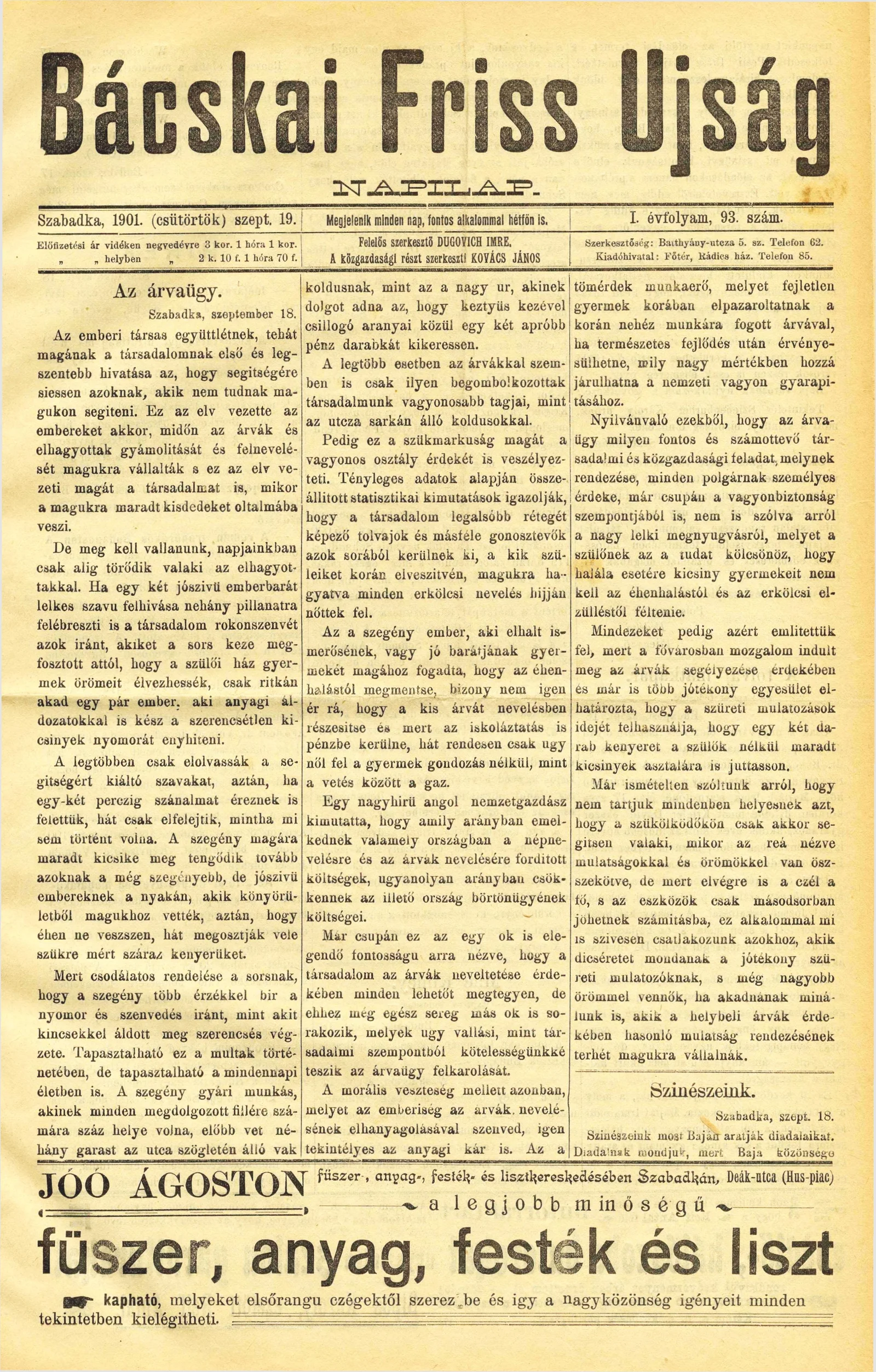 Bácskai Friss Ujság, 1. évf. 1901. szeptember 19. 93. sz.