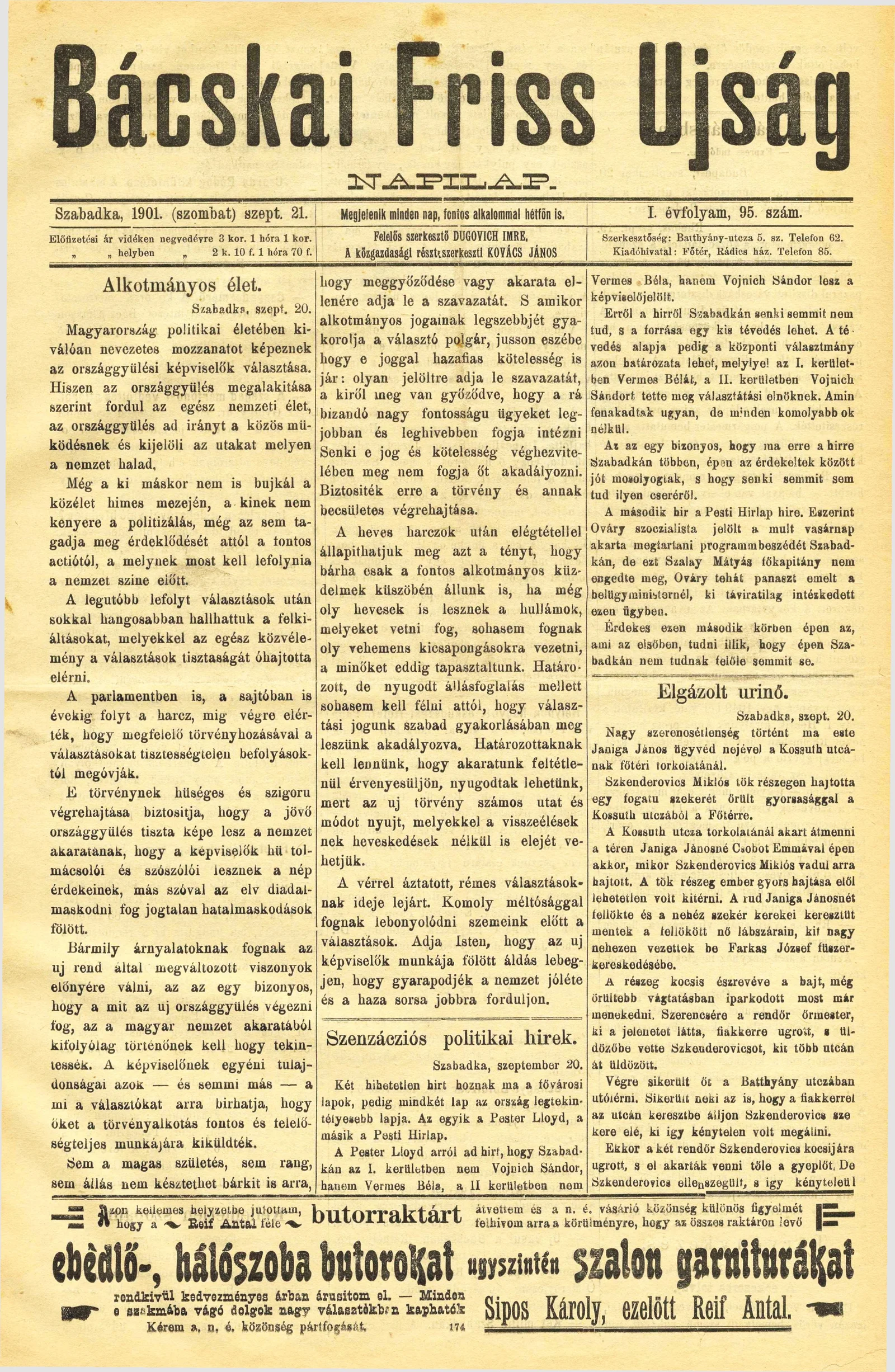 Bácskai Friss Ujság, 1. évf. 1901. szeptember 21. 95. sz.