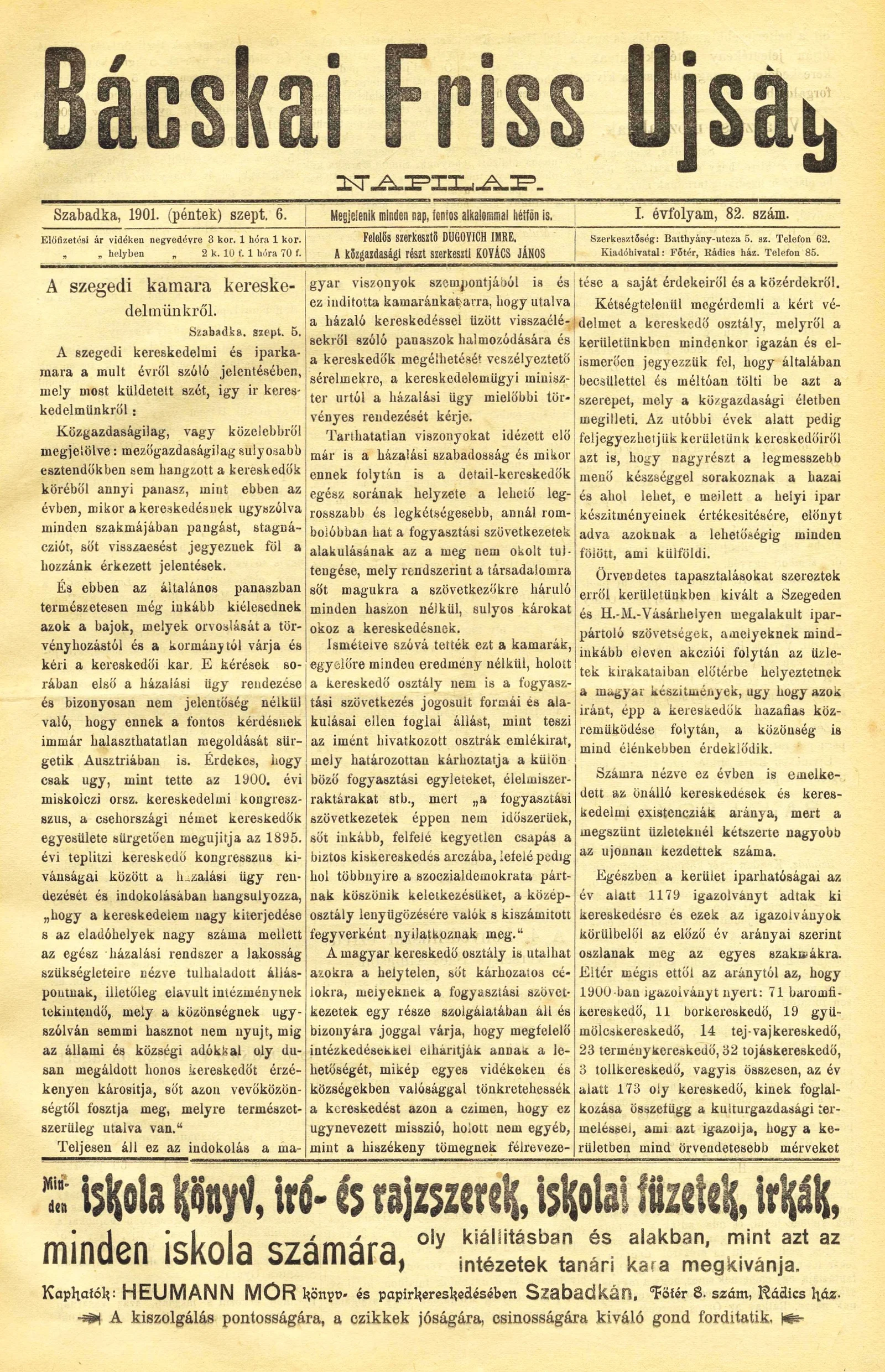 Bácskai Friss Ujság, 1. évf. 1901. szeptember 6. 82. sz.