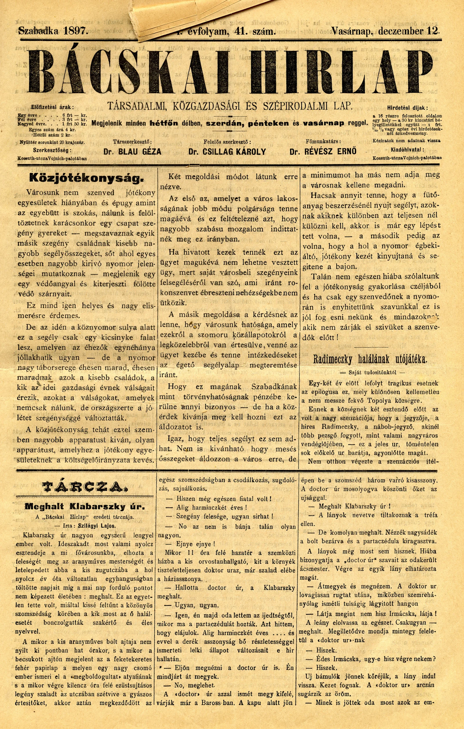 Bácskai Hirlap, 1. évf. 1897. december 12. 41. sz. 1–4. oldal