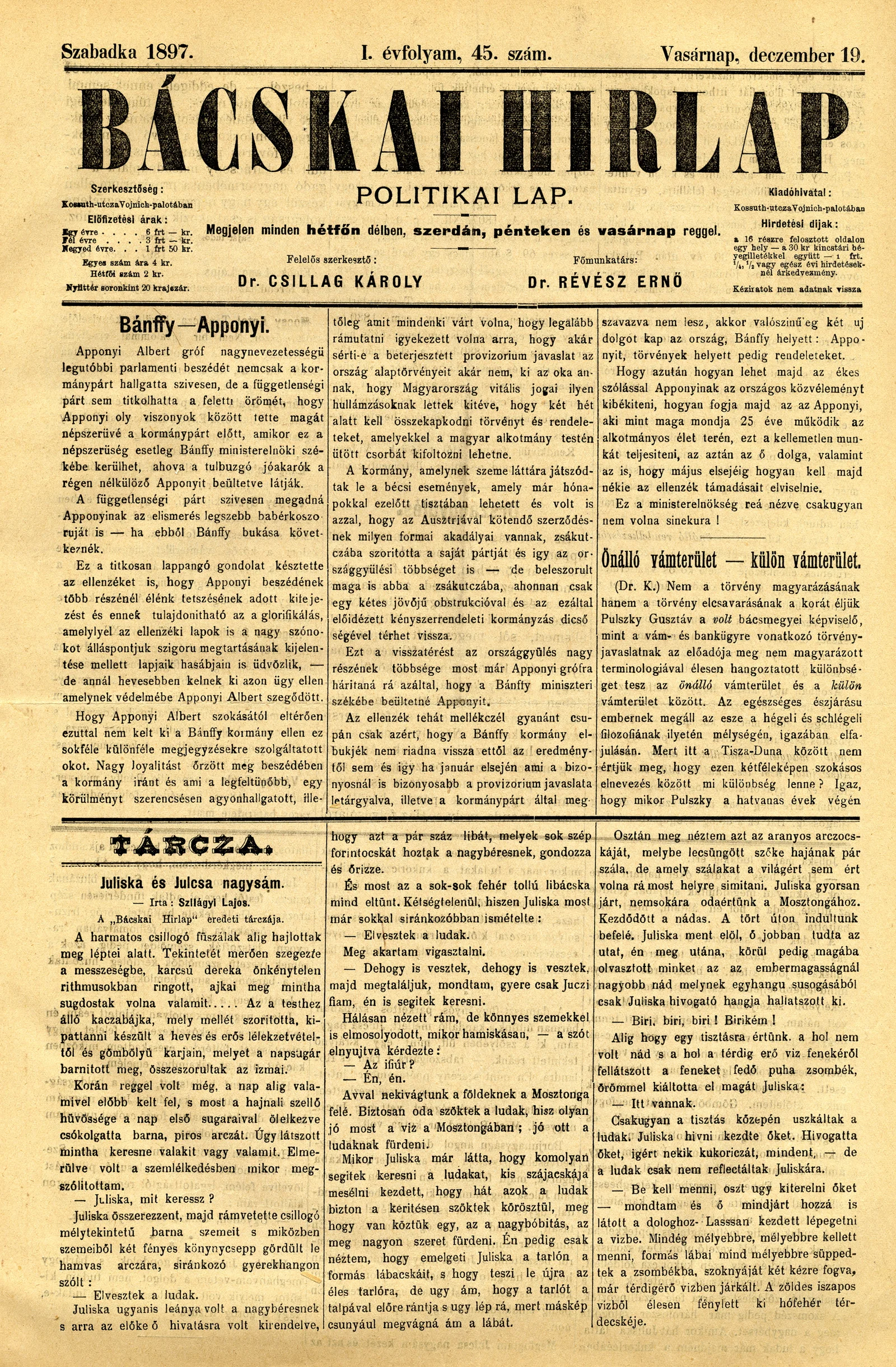 Bácskai Hirlap, 1. évf. 1897. december 19. 45. sz. 1–4. oldal