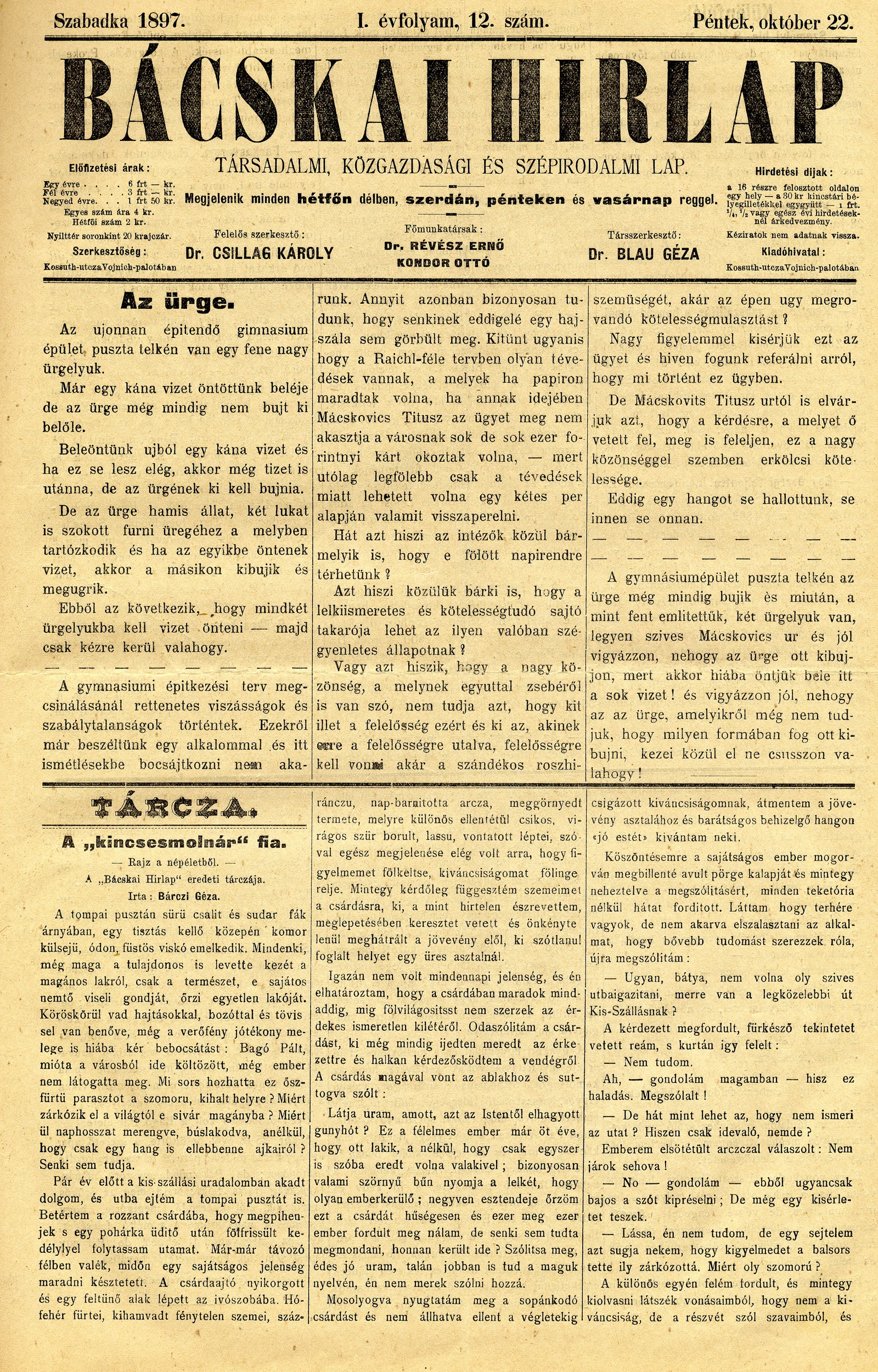 Bácskai Hirlap, 1. évf. 1897. október 22. 12. sz. 1–4. oldal