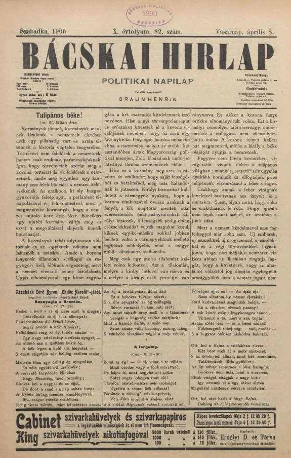 Bácskai Hirlap, 10. évf. 1906. április 8. 82. sz.