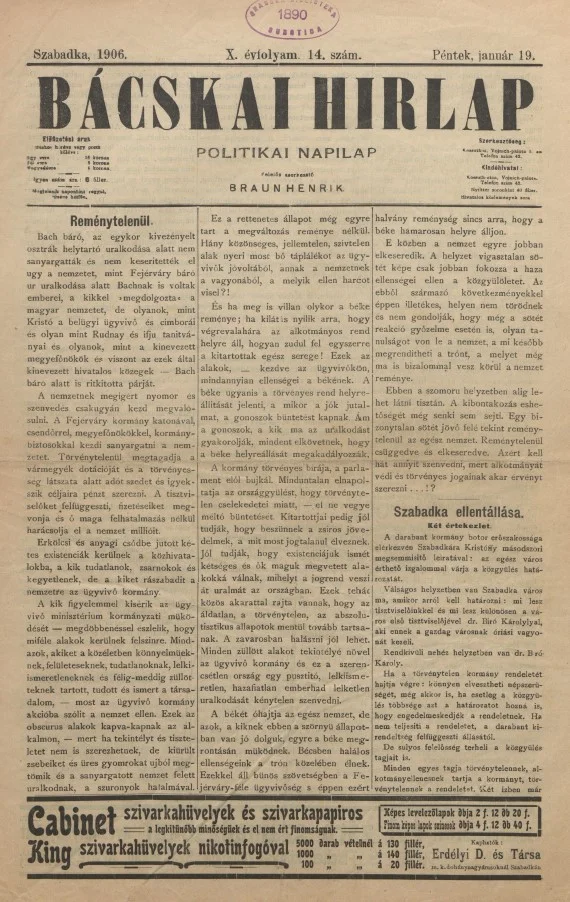Bácskai Hirlap, 10. évf. 1906. január 19. 14. sz.