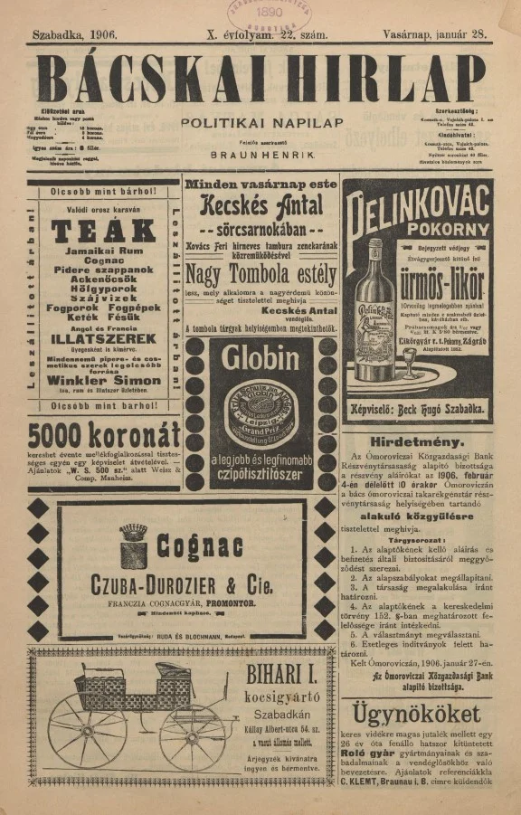 Bácskai Hirlap, 10. évf. 1906. január 28. 22. sz.