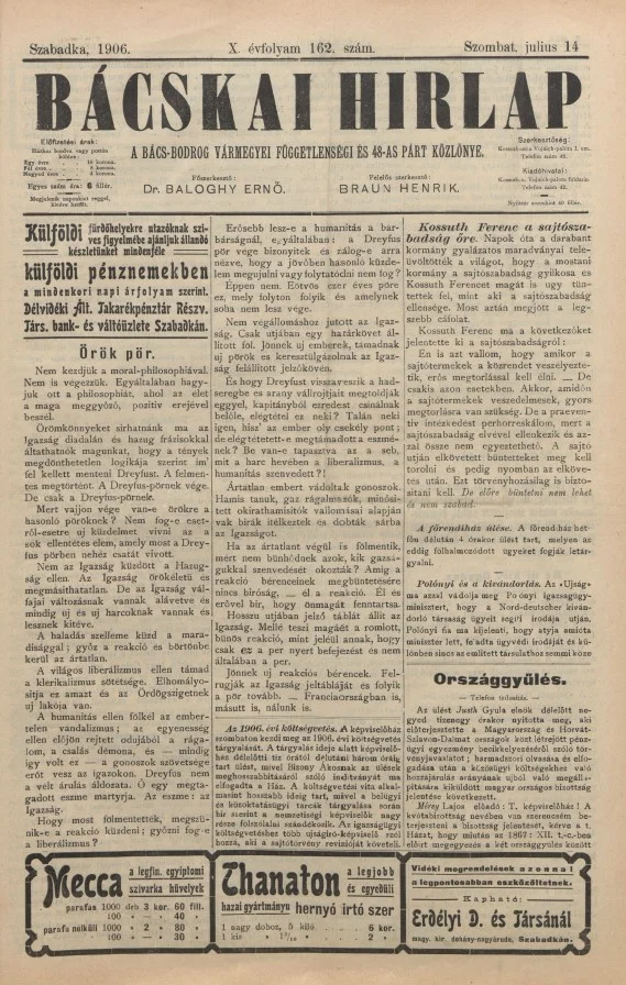 Bácskai Hirlap, 10. évf. 1906. július 14. 162. sz.