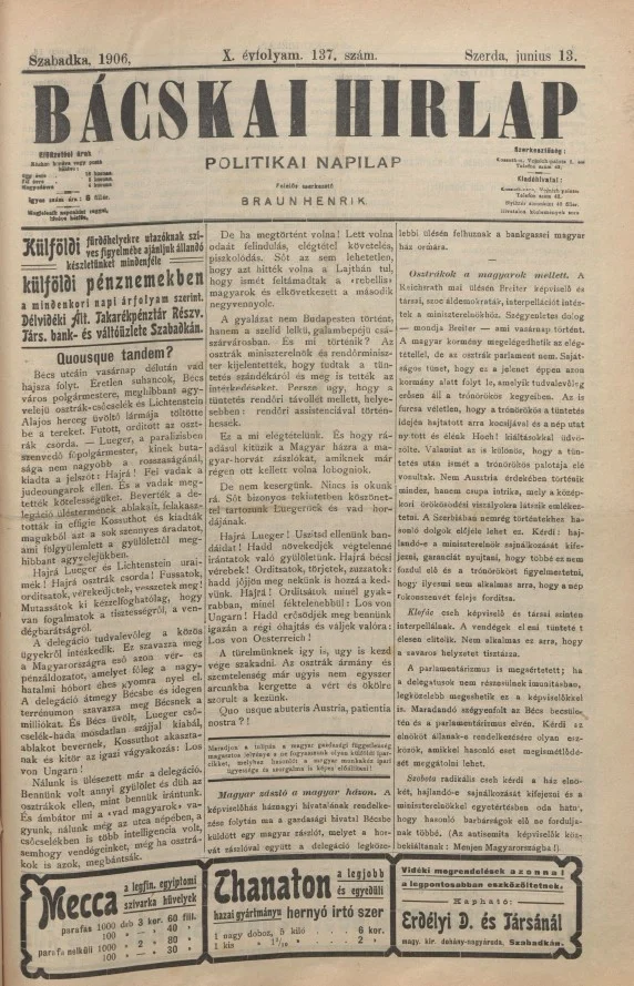 Bácskai Hirlap, 10. évf. 1906. június 13. 137. sz.