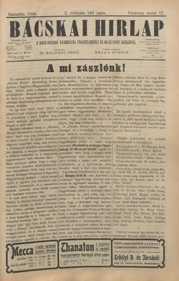 Bácskai Hirlap, 10. évf. 1906. június 17. 140. sz.