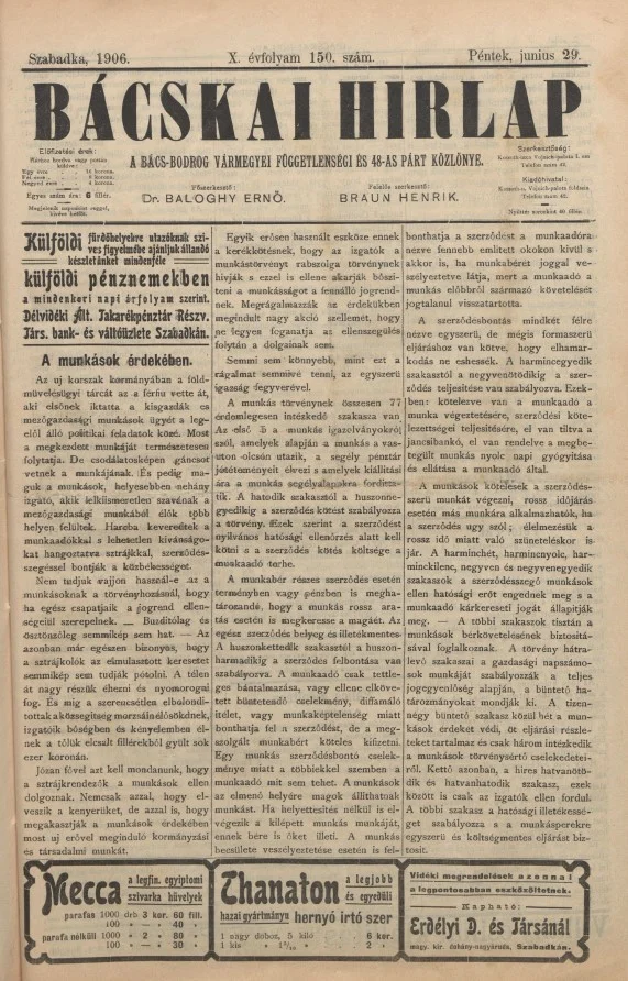 Bácskai Hirlap, 10. évf. 1906. június 29. 150. sz.