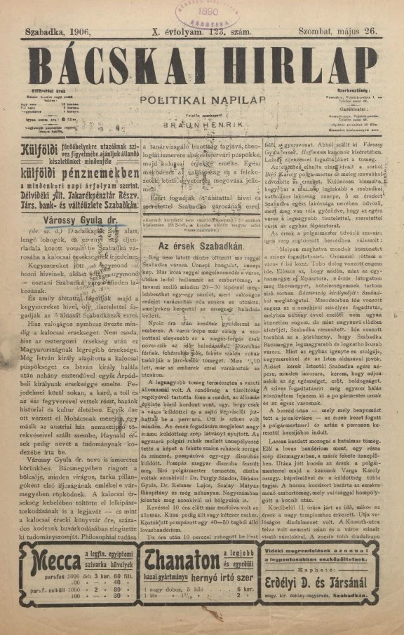 Bácskai Hirlap, 10. évf. 1906. május 26. 123. sz.