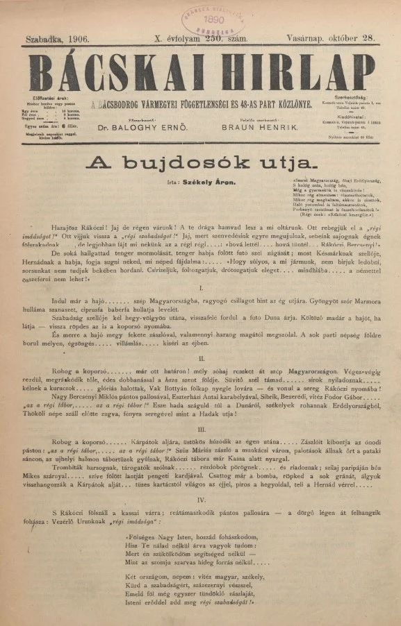 Bácskai Hirlap, 10. évf. 1906. október 28. 250. sz.
