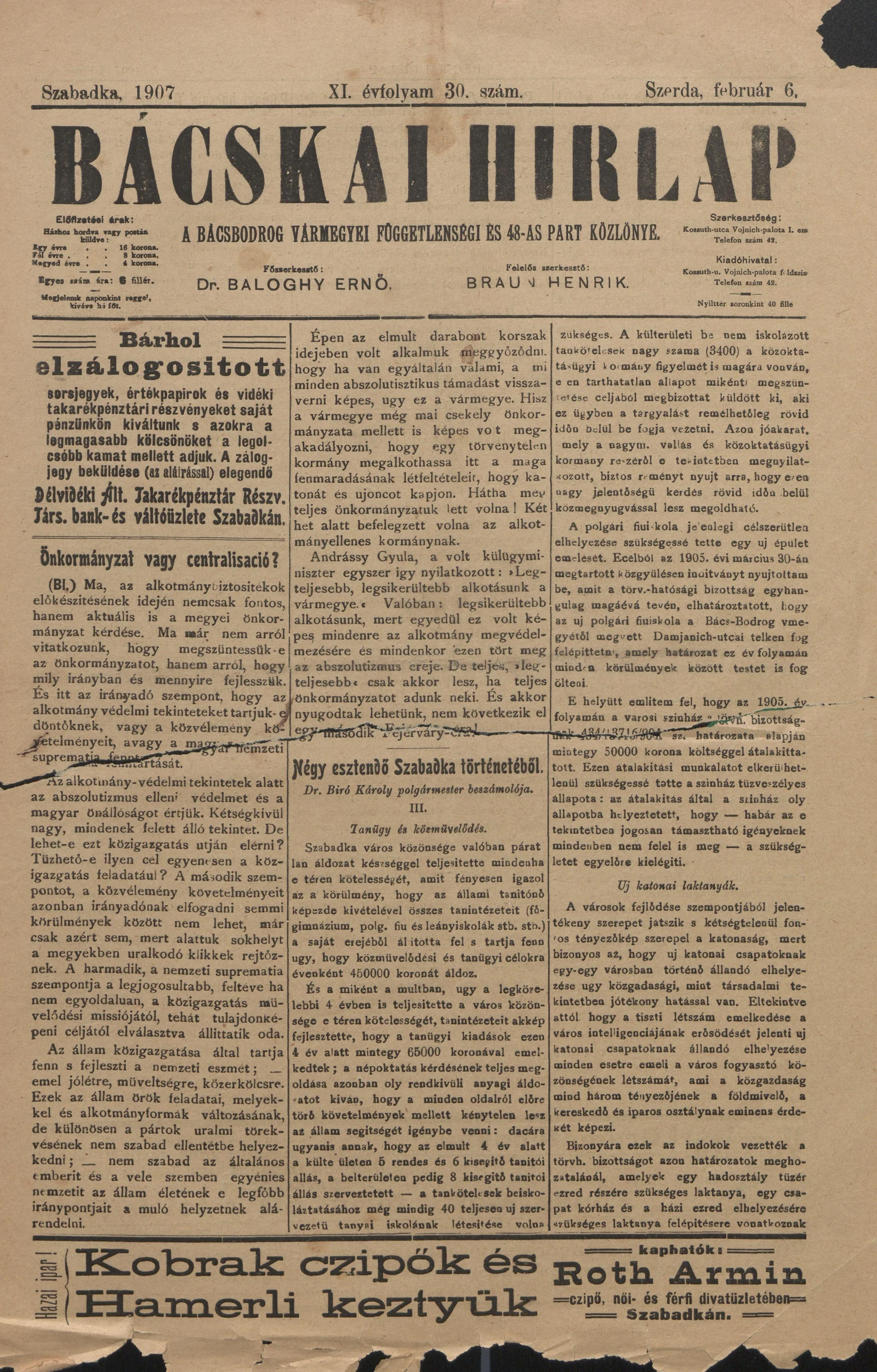 Bácskai Hirlap, 11. évf. 1907. február 6. 30. sz.