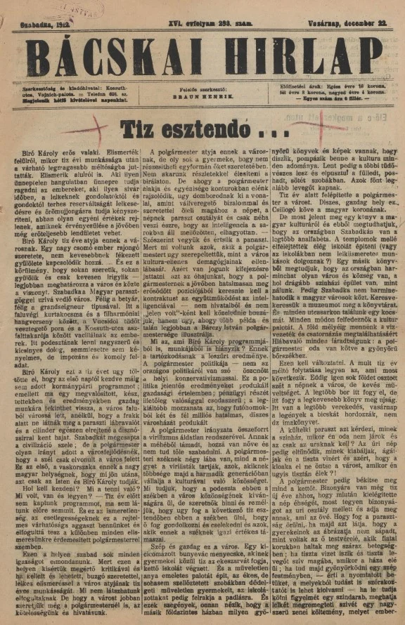 Bácskai Hirlap, 16. évf. 1912. december 22. 293. sz.