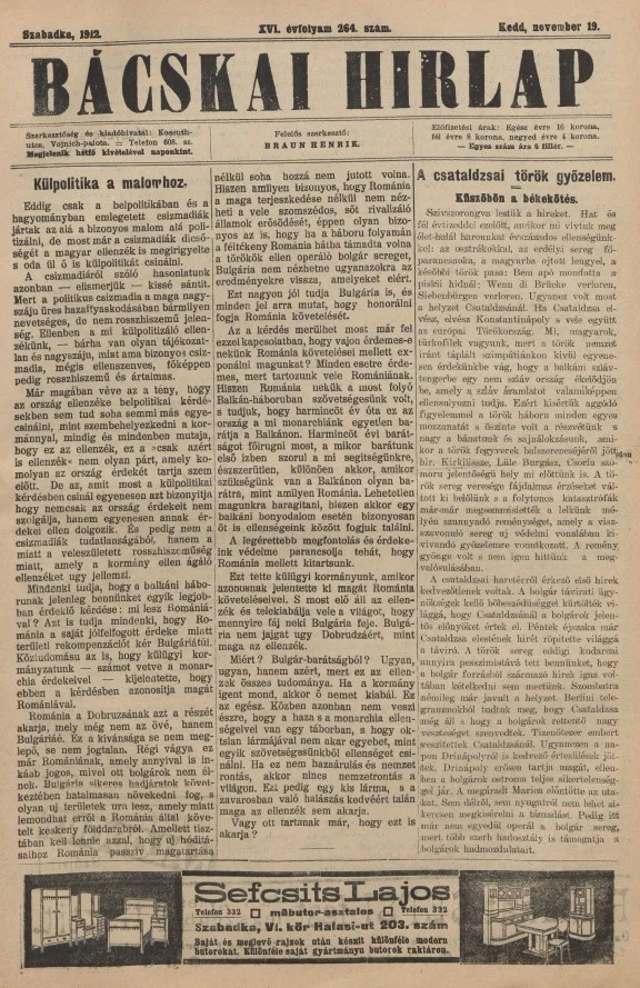 Bácskai Hirlap, 16. évf. 1912. november 19. 264. sz.