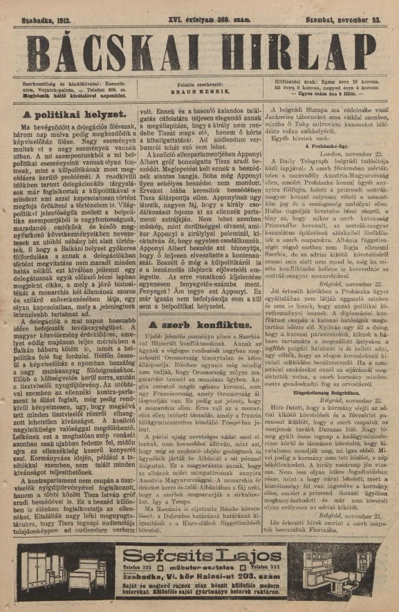 Bácskai Hirlap, 16. évf. 1912. november 23. 268. sz.
