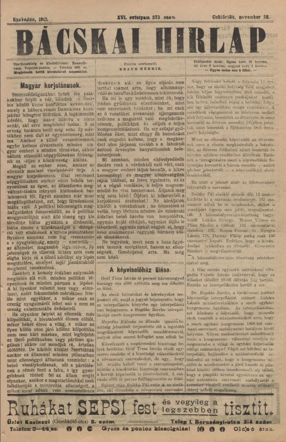 Bácskai Hirlap, 16. évf. 1912. november 28. 272. sz.