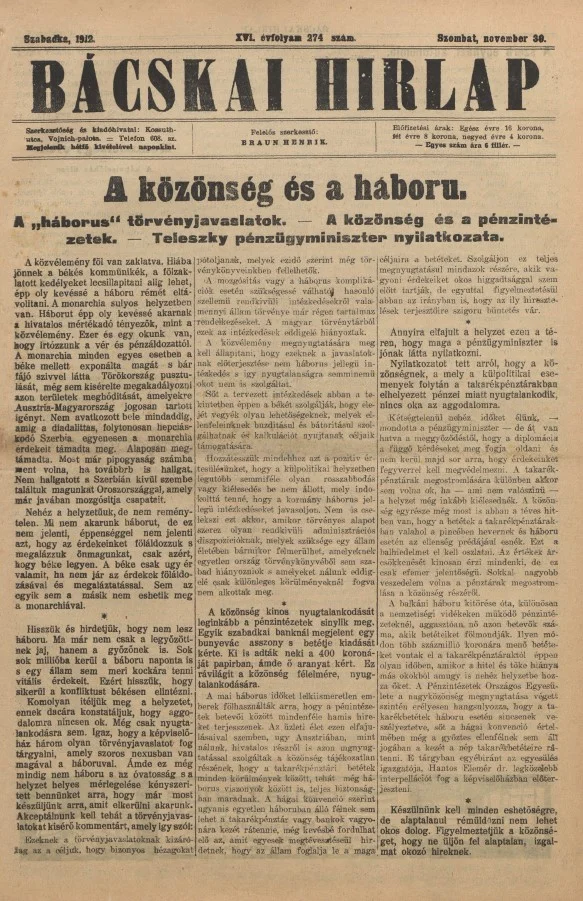 Bácskai Hirlap, 16. évf. 1912. november 30. 274. sz.