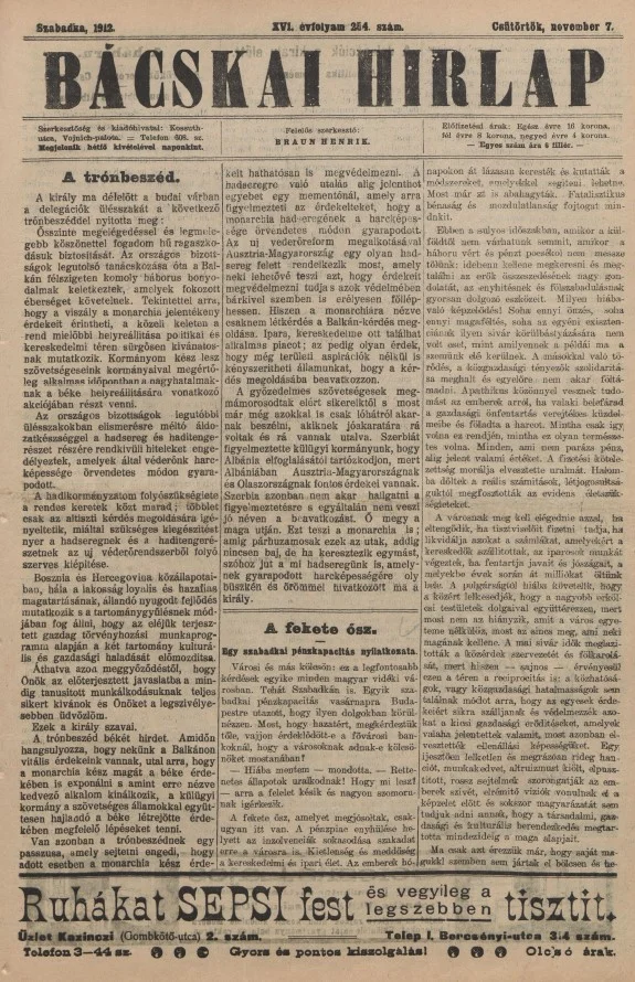 Bácskai Hirlap, 16. évf. 1912. november 7. 254. sz.