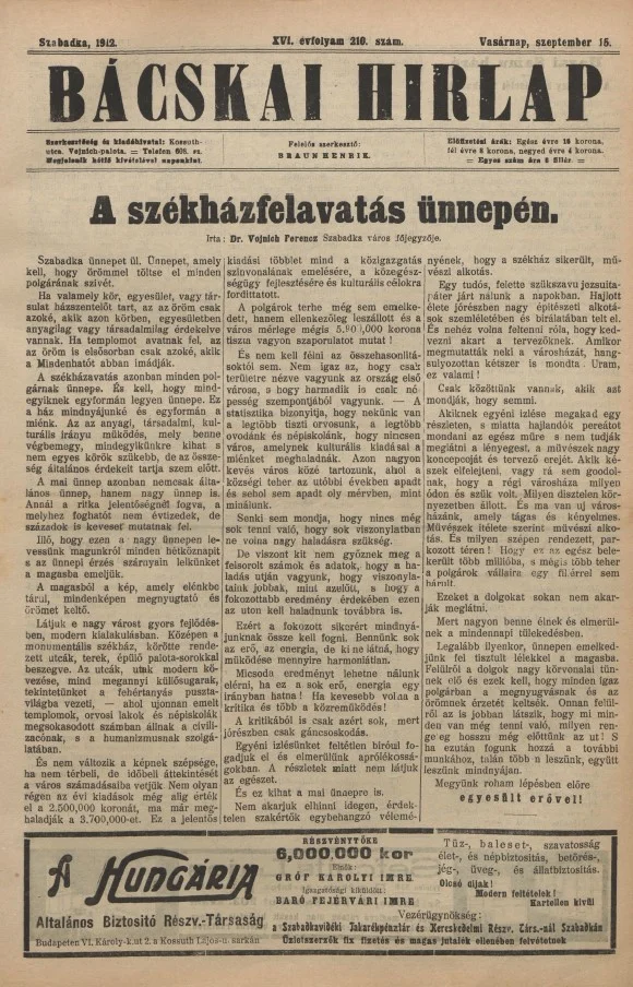 Bácskai Hirlap, 16. évf. 1912. szeptember 15. 210. sz.