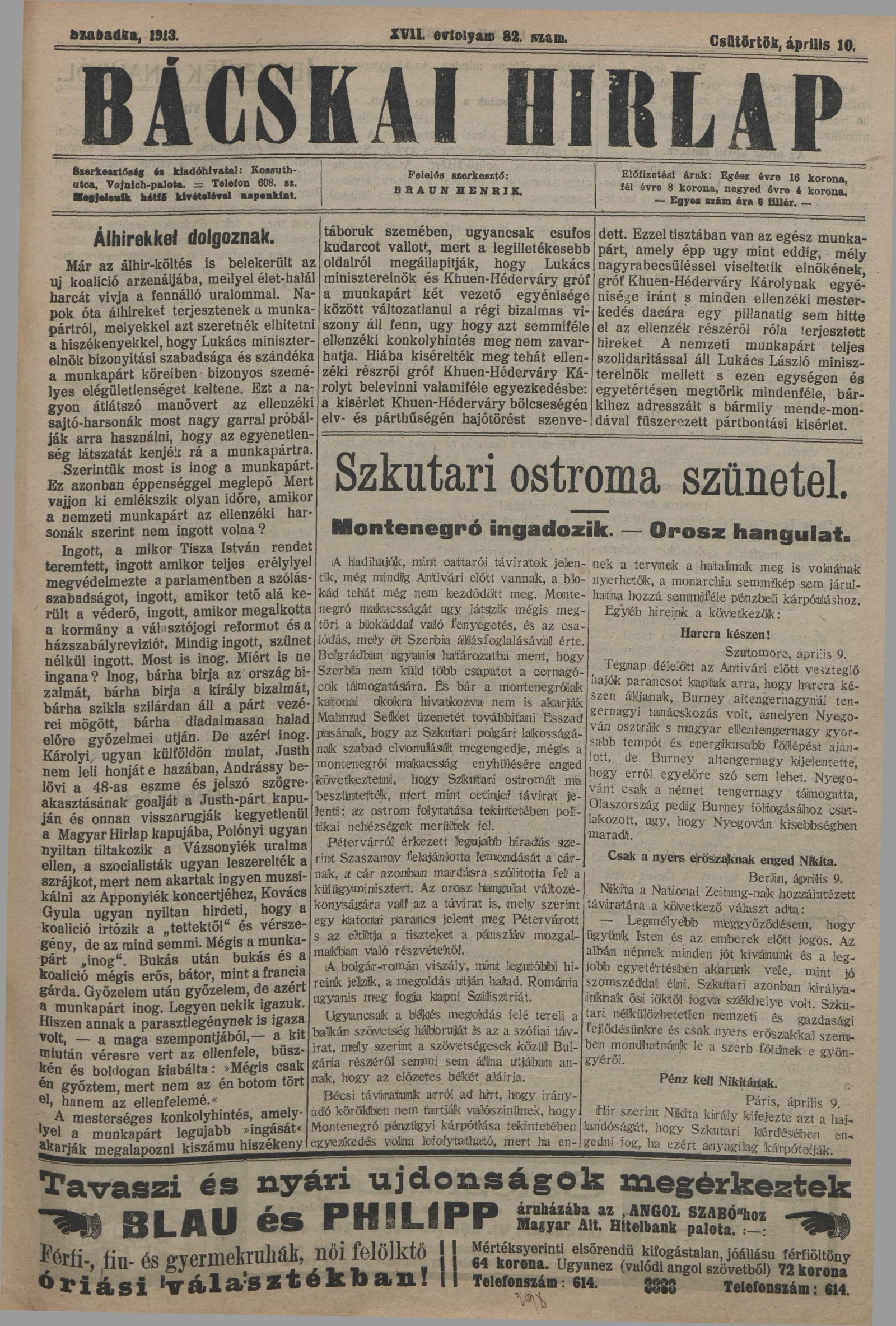 Bácskai Hirlap, 17. évf. 1913. április 10. 82. sz.