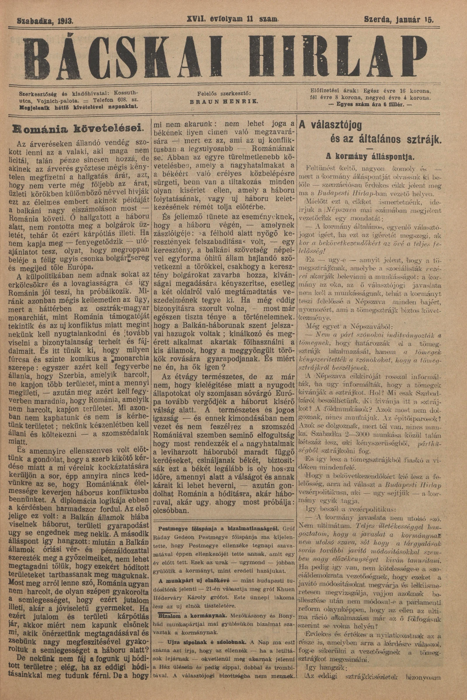 Bácskai Hirlap, 17. évf. 1913. január 15. 11. sz.