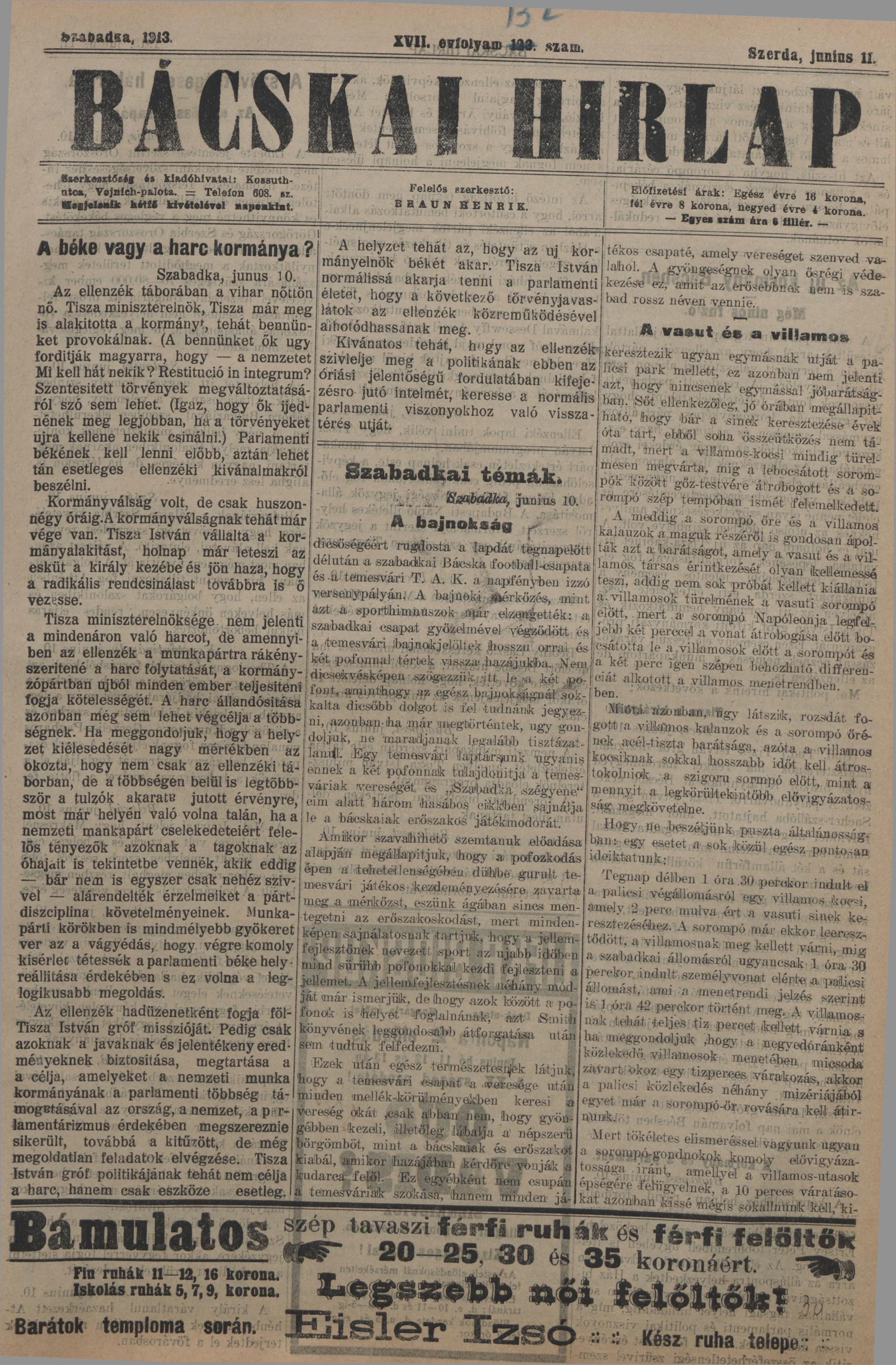 Bácskai Hirlap, 17. évf. 1913. június 11. 132. sz.