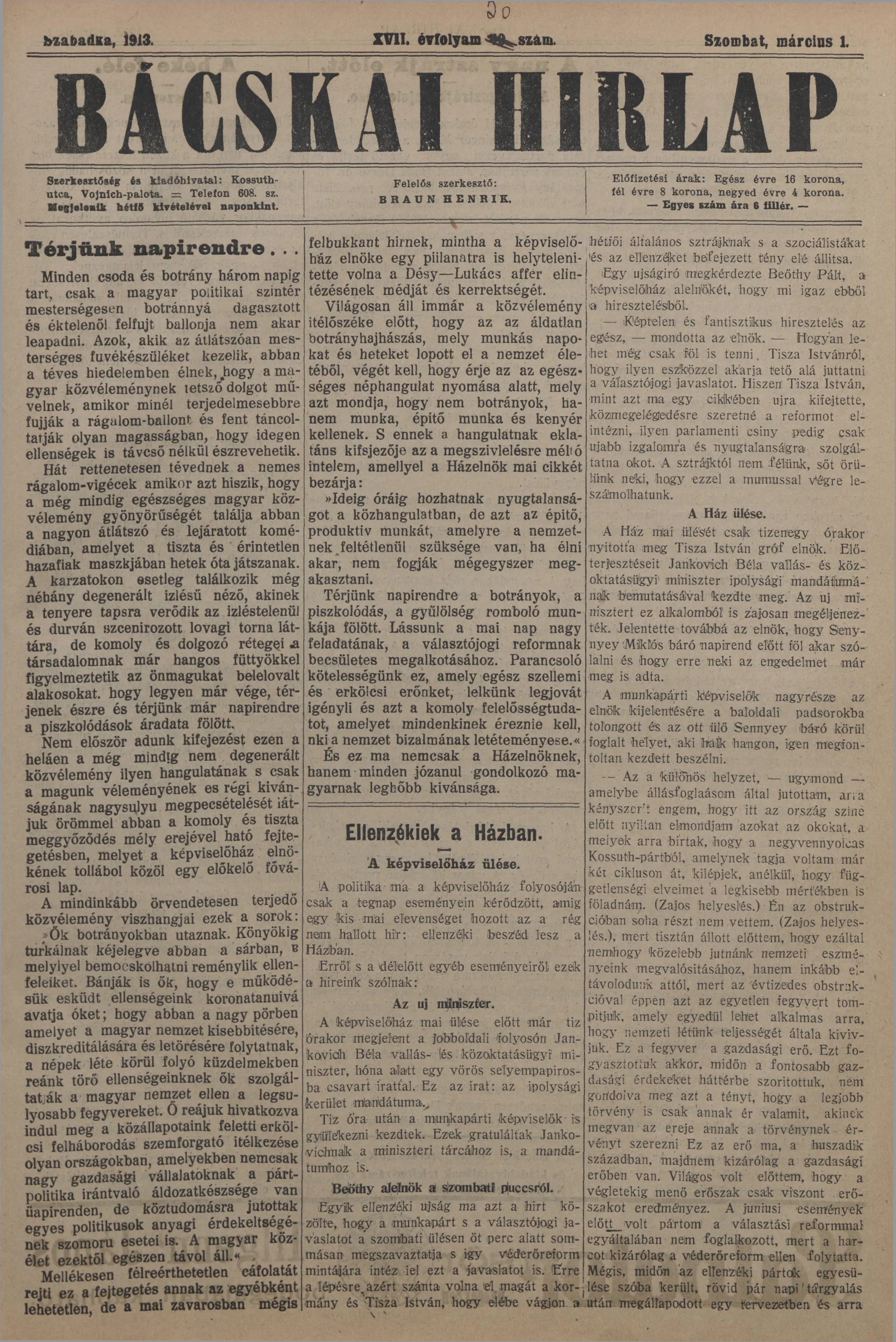 Bácskai Hirlap, 17. évf. 1913. március 1. 50. sz.