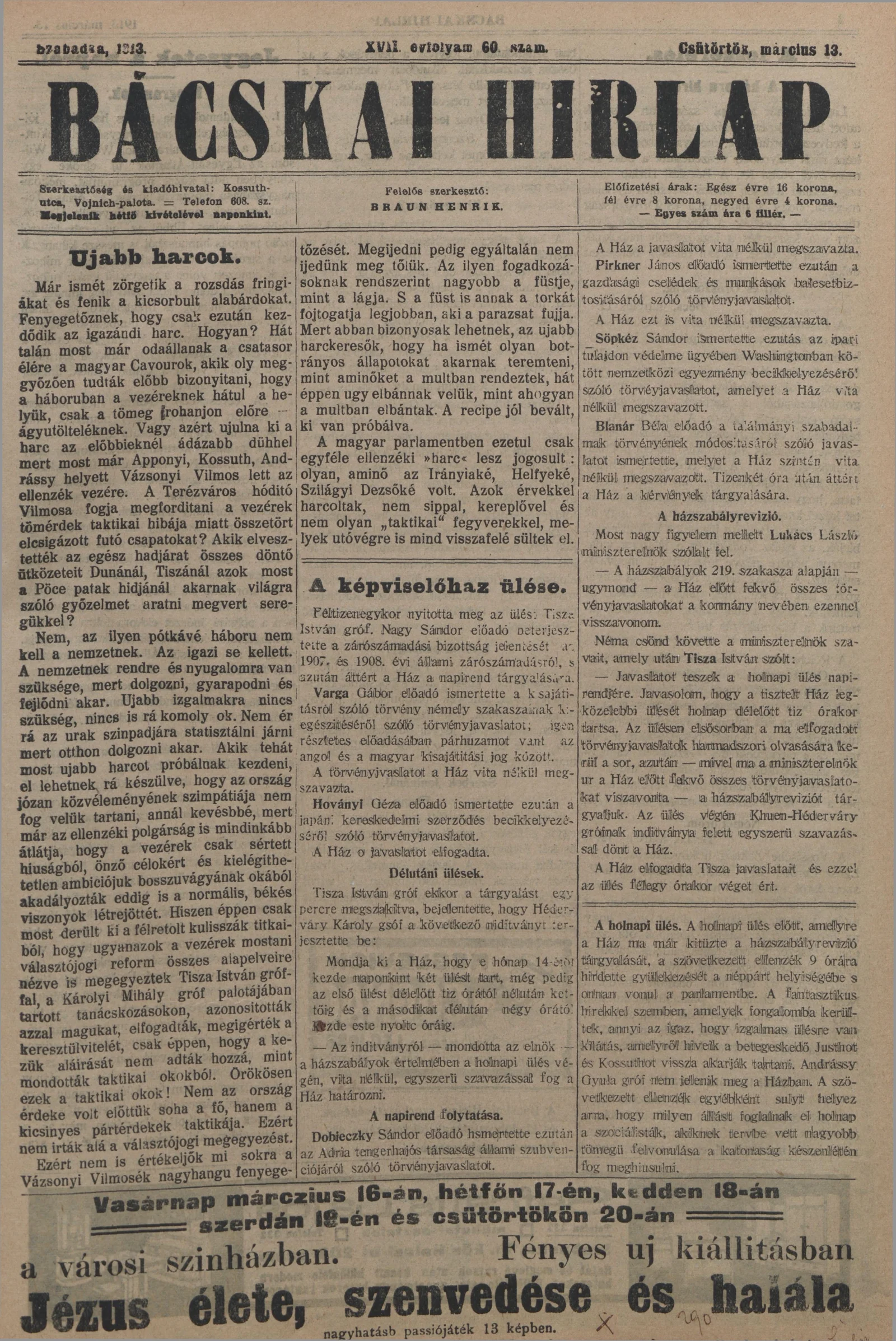 Bácskai Hirlap, 17. évf. 1913. március 13. 60. sz.