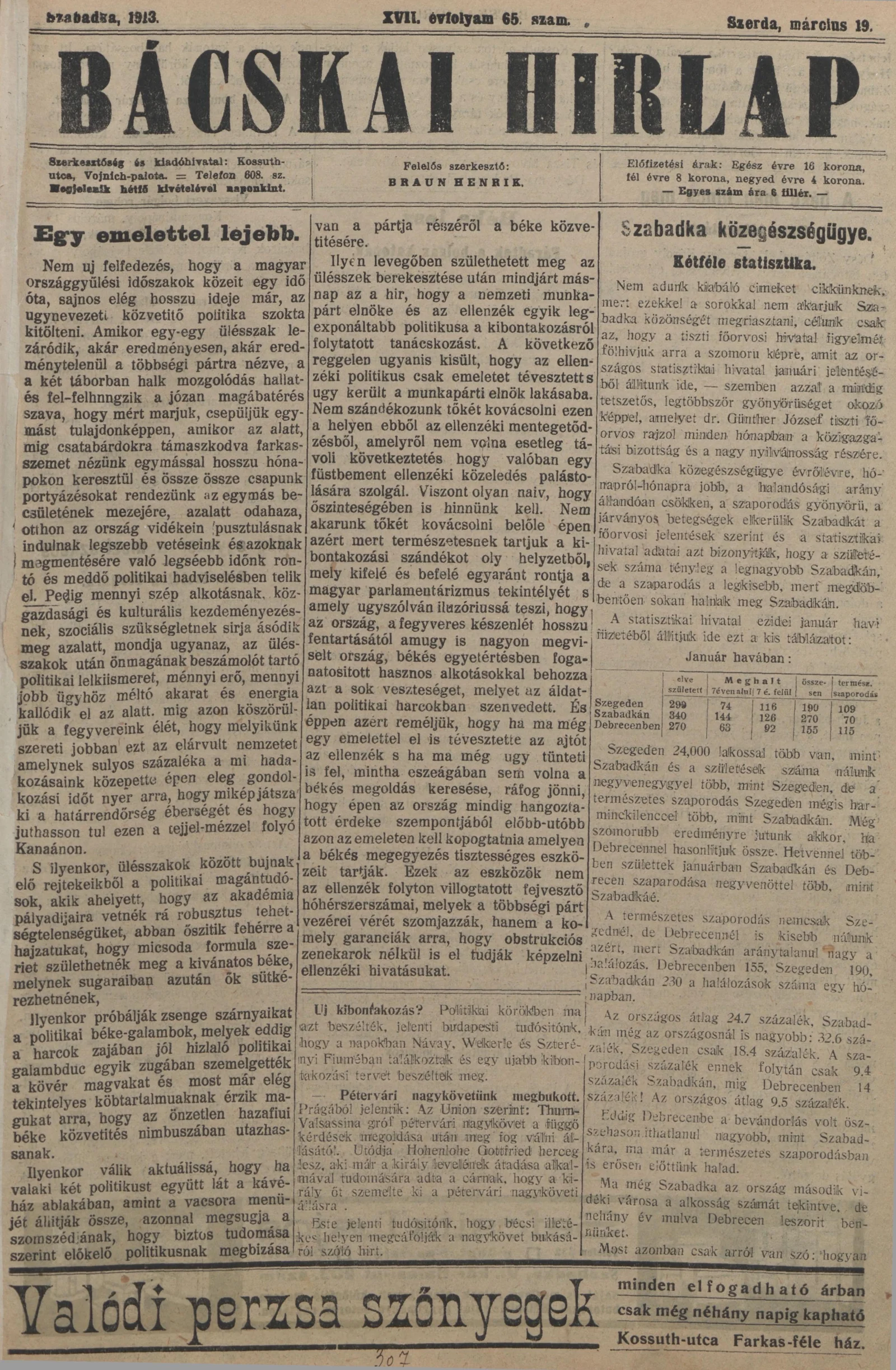 Bácskai Hirlap, 17. évf. 1913. március 19. 65. sz.