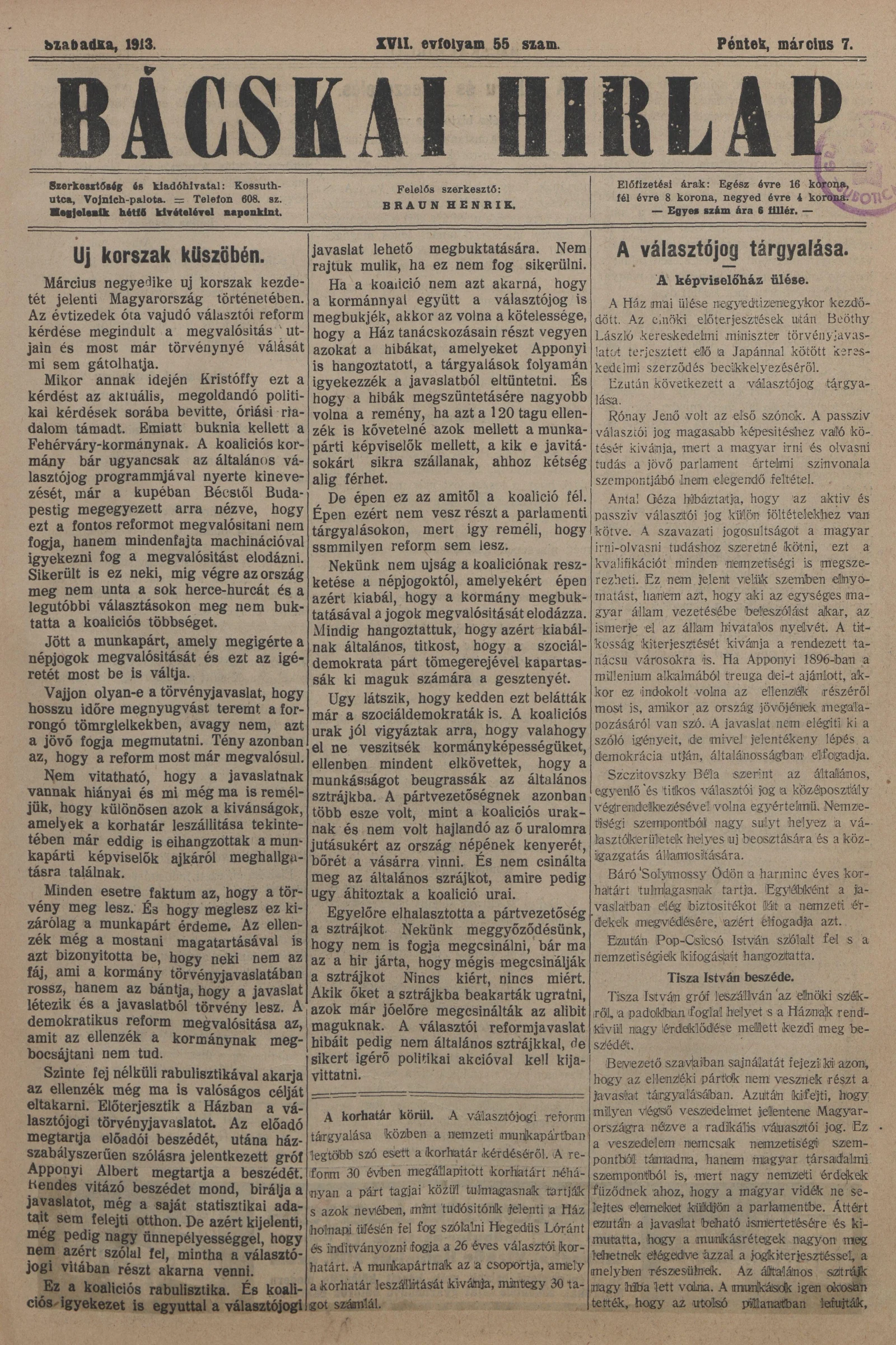 Bácskai Hirlap, 17. évf. 1913. március 7. 55. sz.