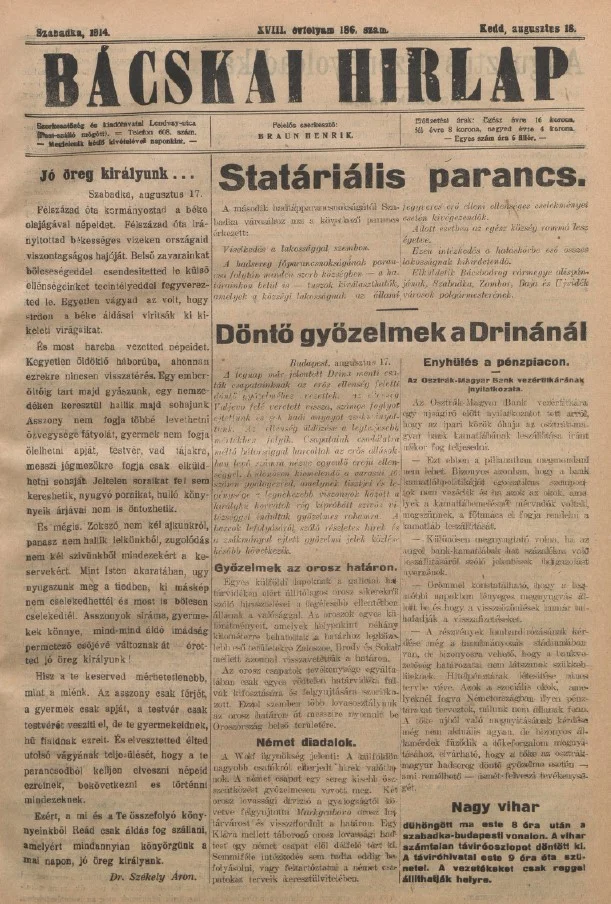 Bácskai Hirlap, 18. évf. 1914. augusztus 18. 186. sz.
