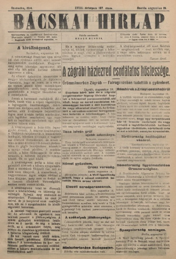 Bácskai Hirlap, 18. évf. 1914. augusztus 19. 187. sz.