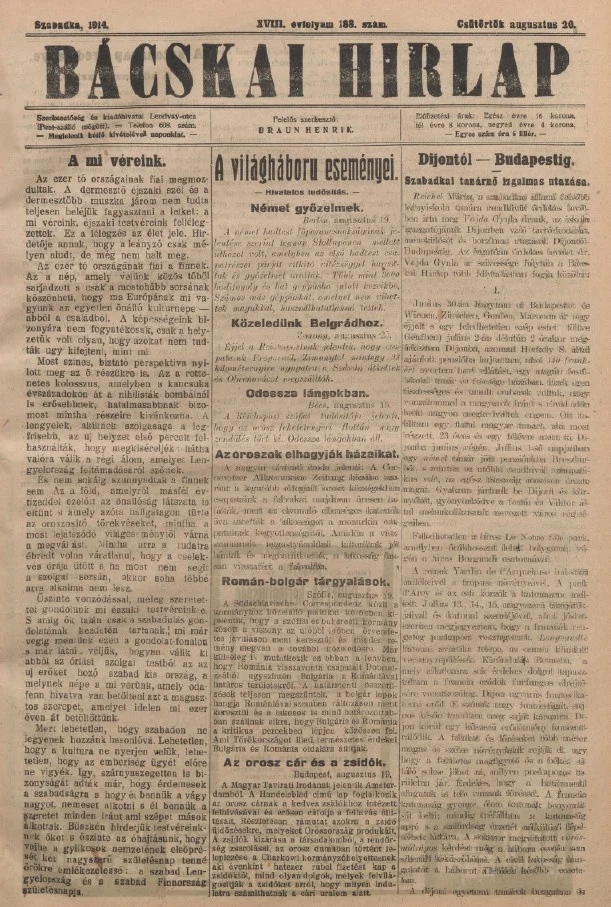 Bácskai Hirlap, 18. évf. 1914. augusztus 20. 188. sz.