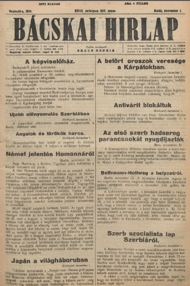 Bácskai Hirlap, 18. évf. 1914. december 1. 327. sz.