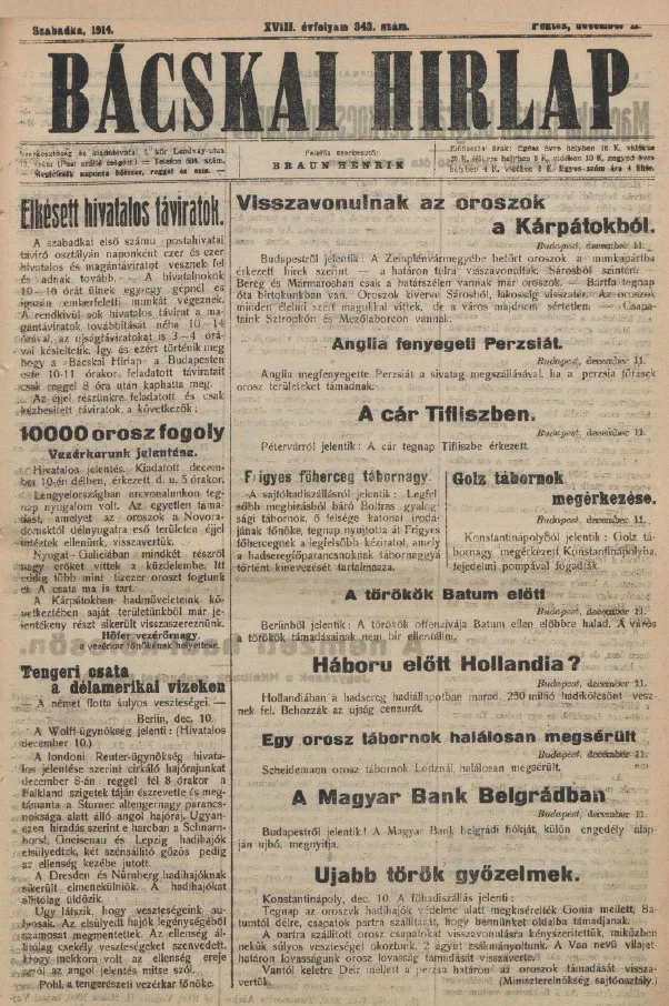 Bácskai Hirlap, 18. évf. 1914. december 11. 343. sz.