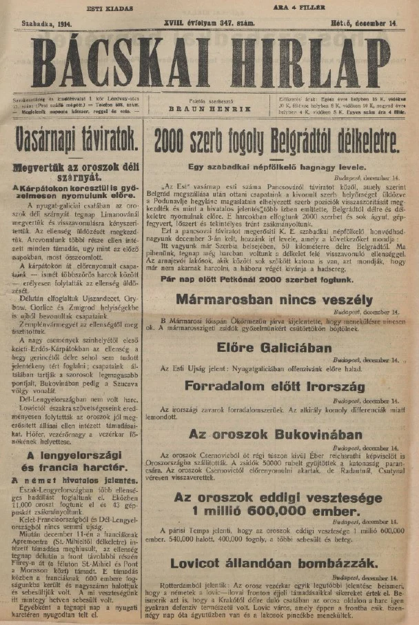 Bácskai Hirlap, 18. évf. 1914. december 14. 347. sz.