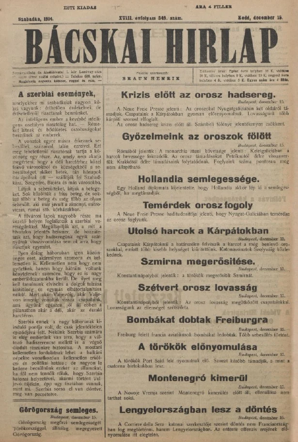 Bácskai Hirlap, 18. évf. 1914. december 15. 349. sz.