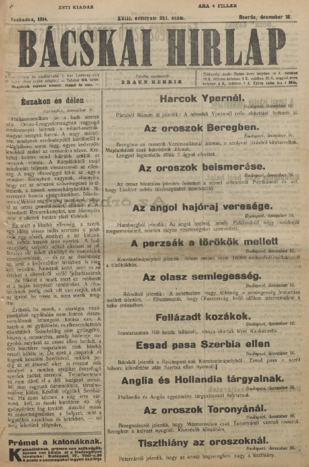 Bácskai Hirlap, 18. évf. 1914. december 16. 351. sz.
