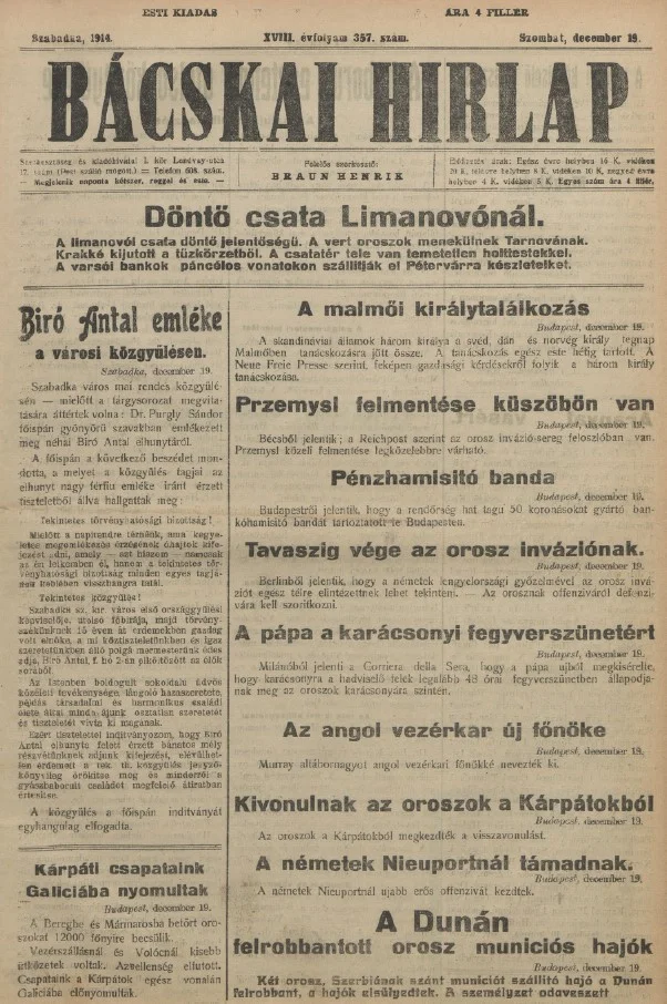 Bácskai Hirlap, 18. évf. 1914. december 19. 357. sz.