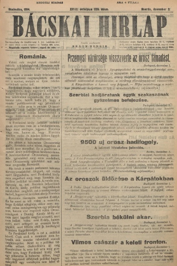 Bácskai Hirlap, 18. évf. 1914. december 2. 328. sz.