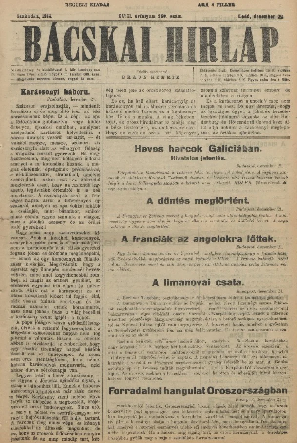 Bácskai Hirlap, 18. évf. 1914. december 22. 360. sz.