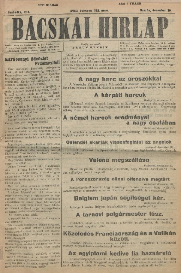 Bácskai Hirlap, 18. évf. 1914. december 30. 372. sz.