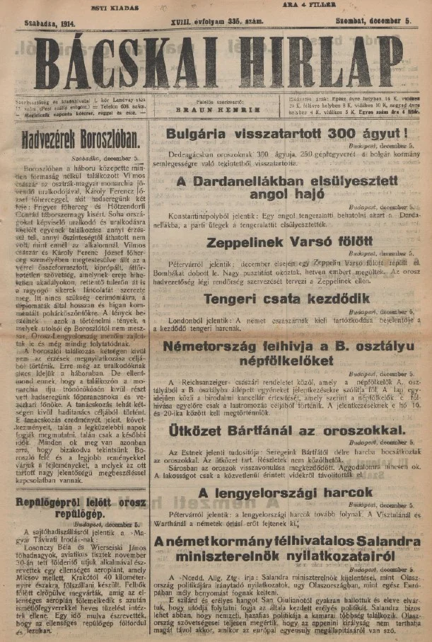 Bácskai Hirlap, 18. évf. 1914. december 5. 335. sz.