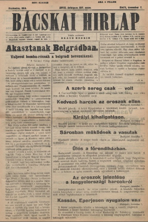 Bácskai Hirlap, 18. évf. 1914. december 7. 337. sz.