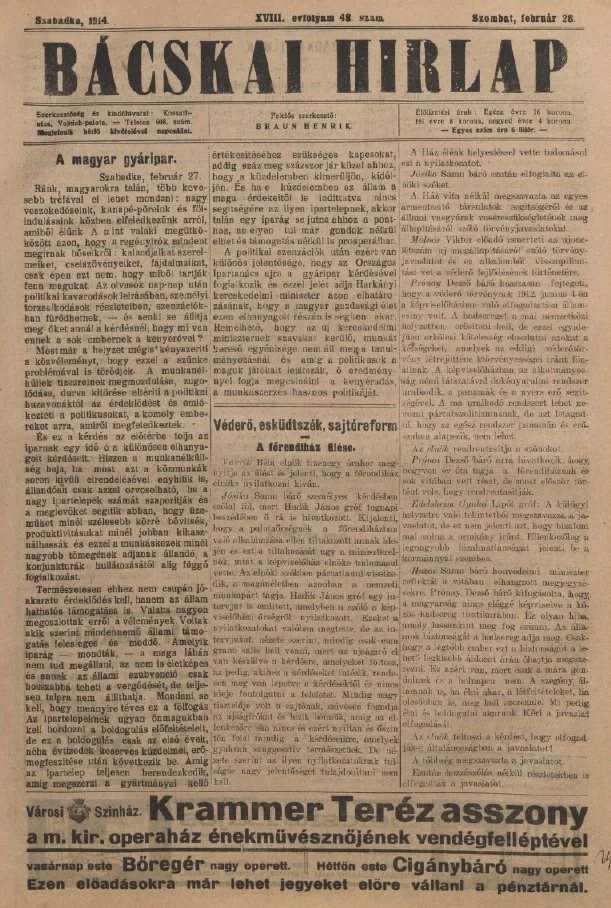 Bácskai Hirlap, 18. évf. 1914. február 28. 48. sz.