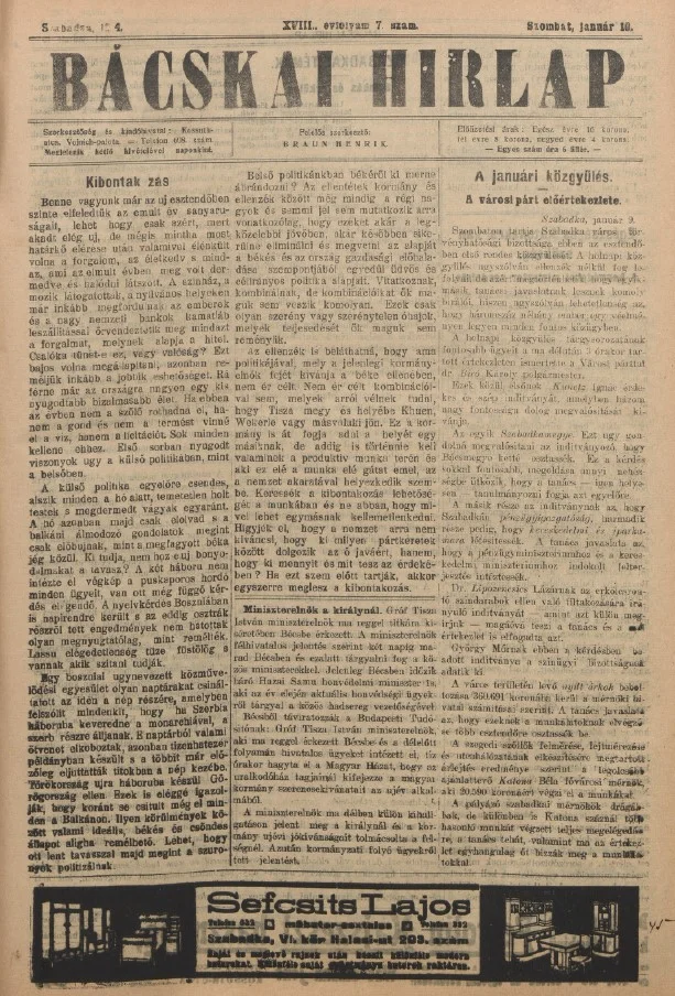 Bácskai Hirlap, 18. évf. 1914. január 10. 7. sz.